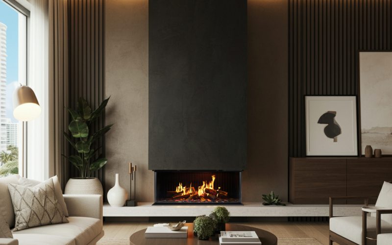 Forestil dig denne panoramiske pejs, der lyser dit hjem op! Tænk på alle de dejlige aftener, du vil nyde omkring denne pejs.